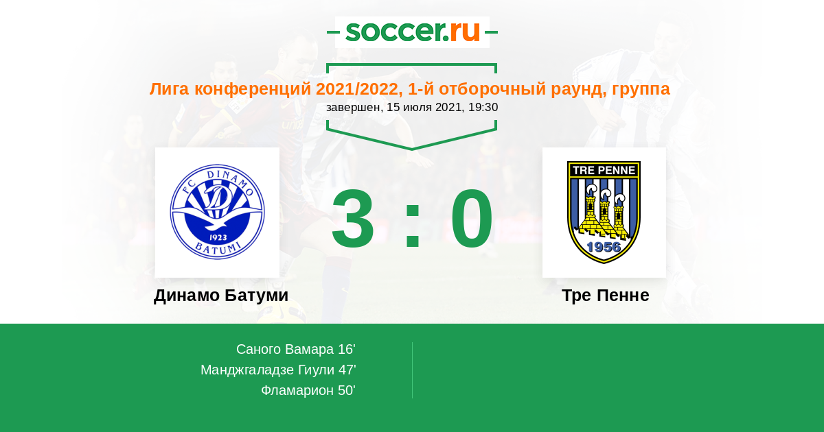 Протокол матча Динамо Батуми против Тре Пенне
