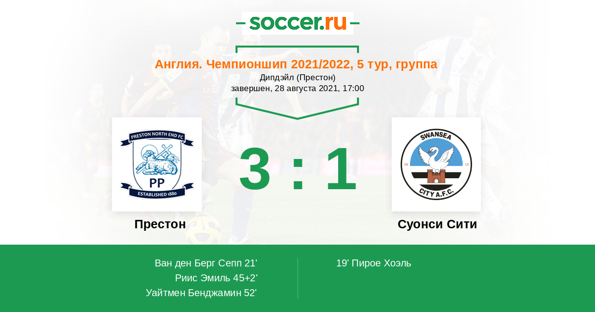 Протокол матча Престон против Суонси Сити