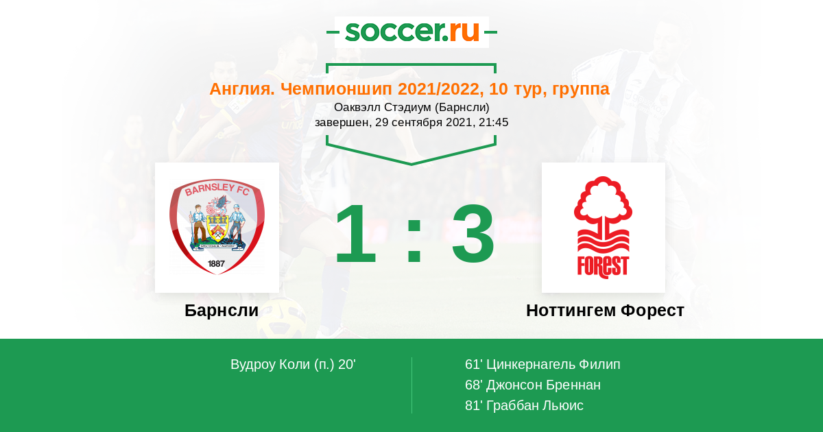 Протокол матча Барнсли против Ноттингем Форест