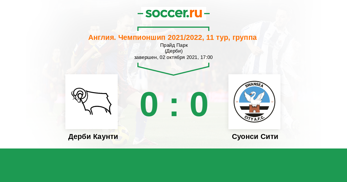 Протокол матча Дерби Каунти против Суонси Сити