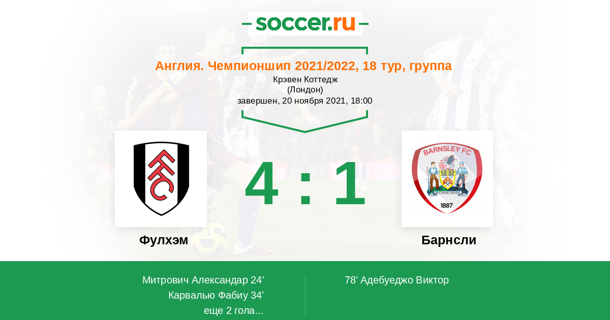 Протокол матча Фулхэм против Барнсли