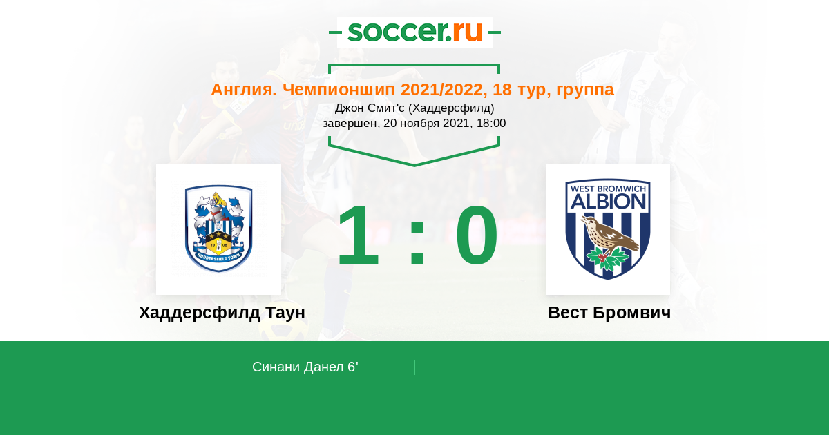 Протокол матча Хаддерсфилд Таун против Вест Бромвич