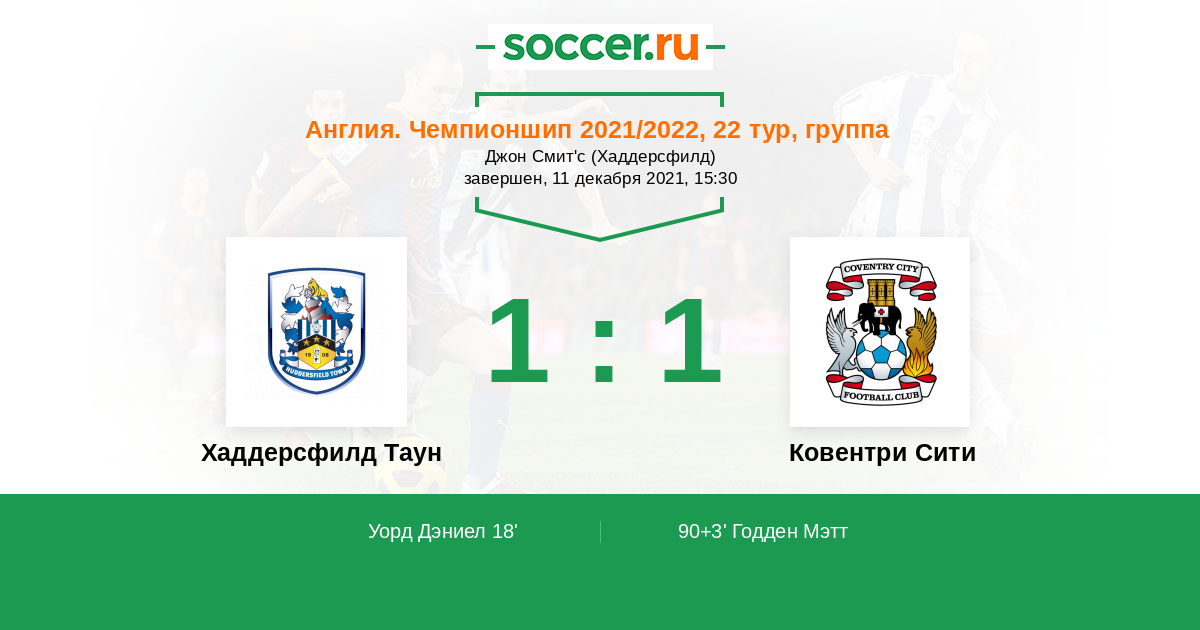 Протокол матча Хаддерсфилд Таун против Ковентри Сити