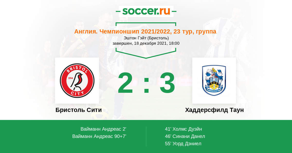 Протокол матча Бристоль Сити против Хаддерсфилд Таун