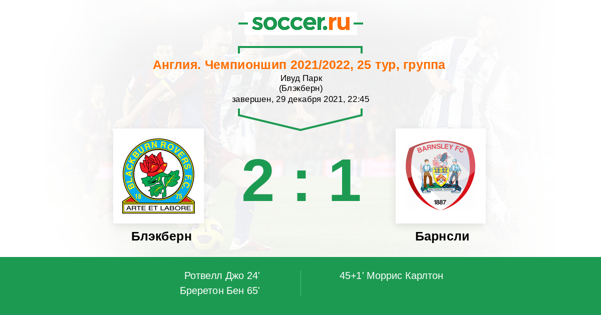 Протокол матча Блэкберн против Барнсли