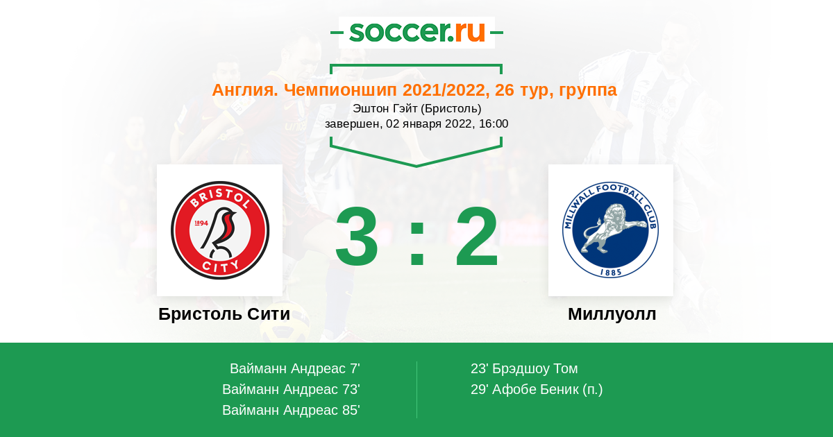 Протокол матча Бристоль Сити против Миллуолл