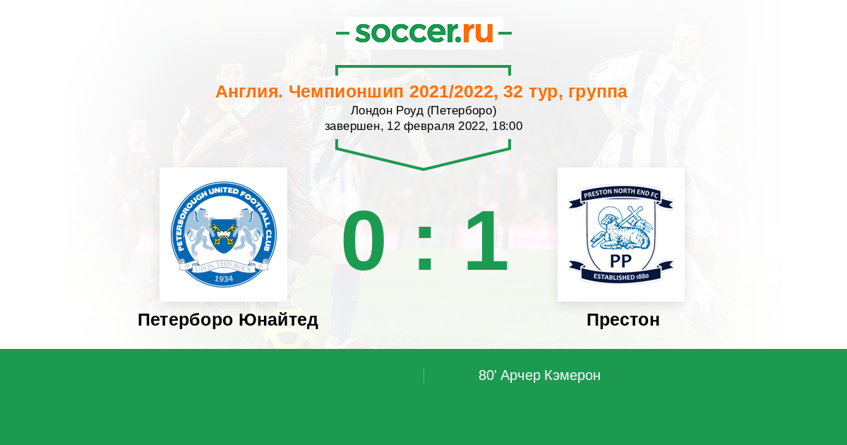 Протокол матча Петерборо Юнайтед против Престон