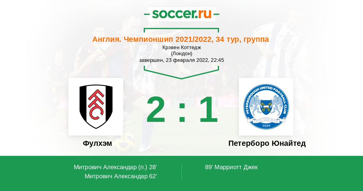 Протокол матча Фулхэм против Петерборо Юнайтед