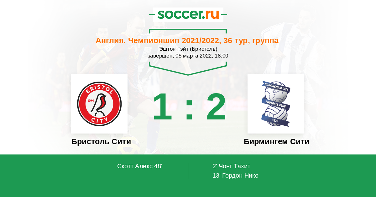 Протокол матча Бристоль Сити против Бирмингем Сити
