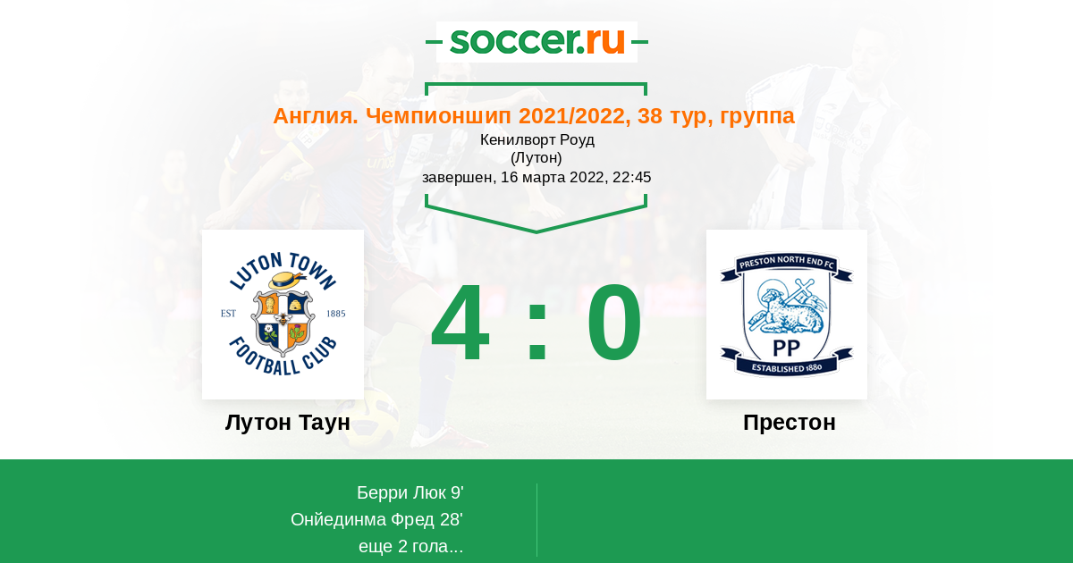 Протокол матча Лутон Таун против Престон