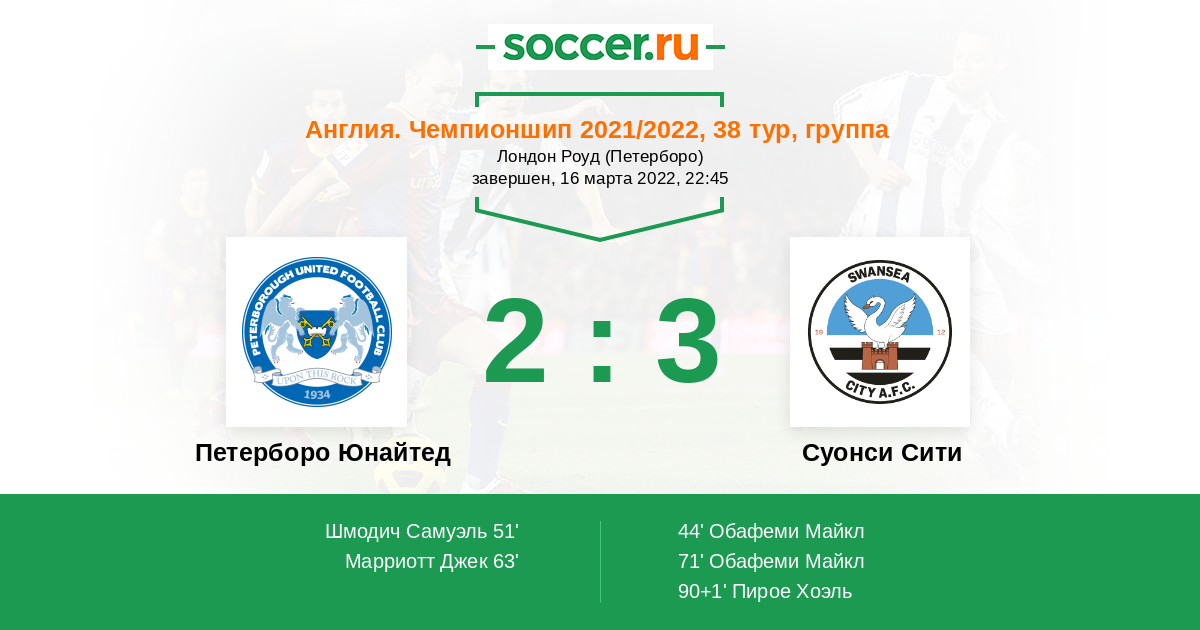 Протокол матча Петерборо Юнайтед против Суонси Сити