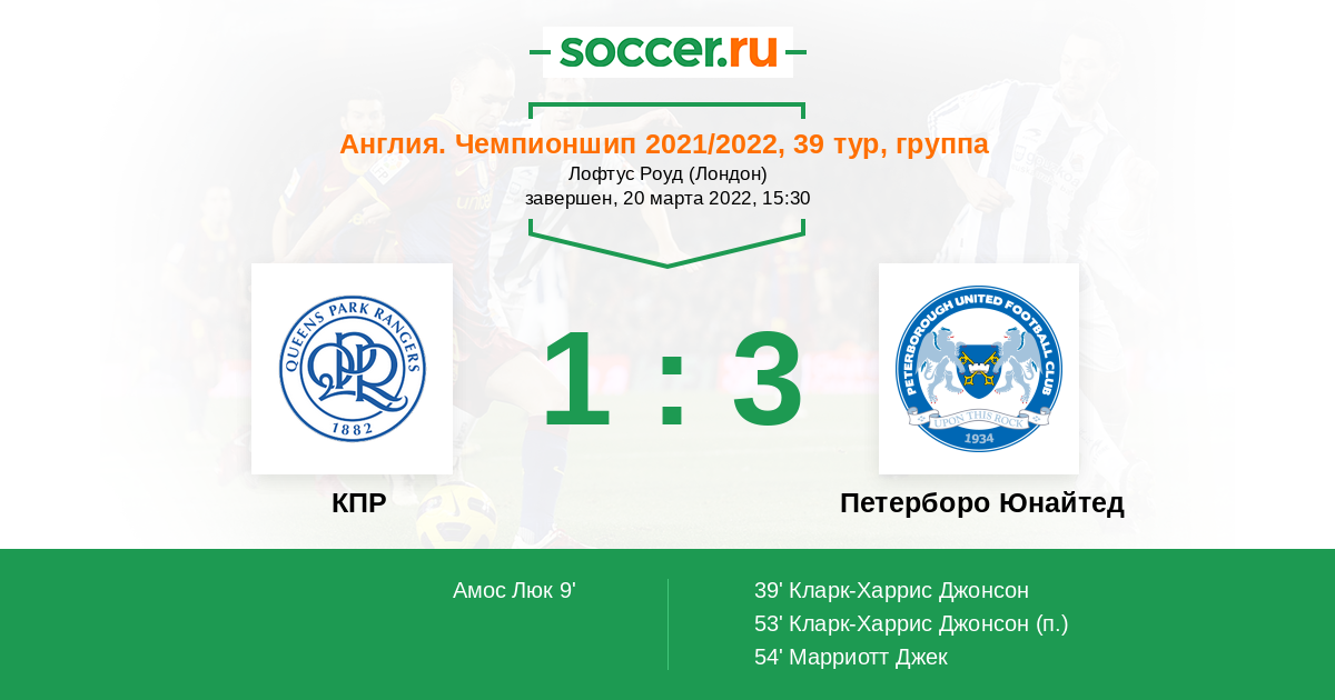 “Куинз Парк Рейнджерс“ дважды проиграл “Питерборо“ в текущем сезоне – в первом круге чемпионата и Кубке Англии. Оба матча были на территории “пафосных“. Теперь у “обручей“ есть все шансы взять реванш и они обязательно воспользуются ими.