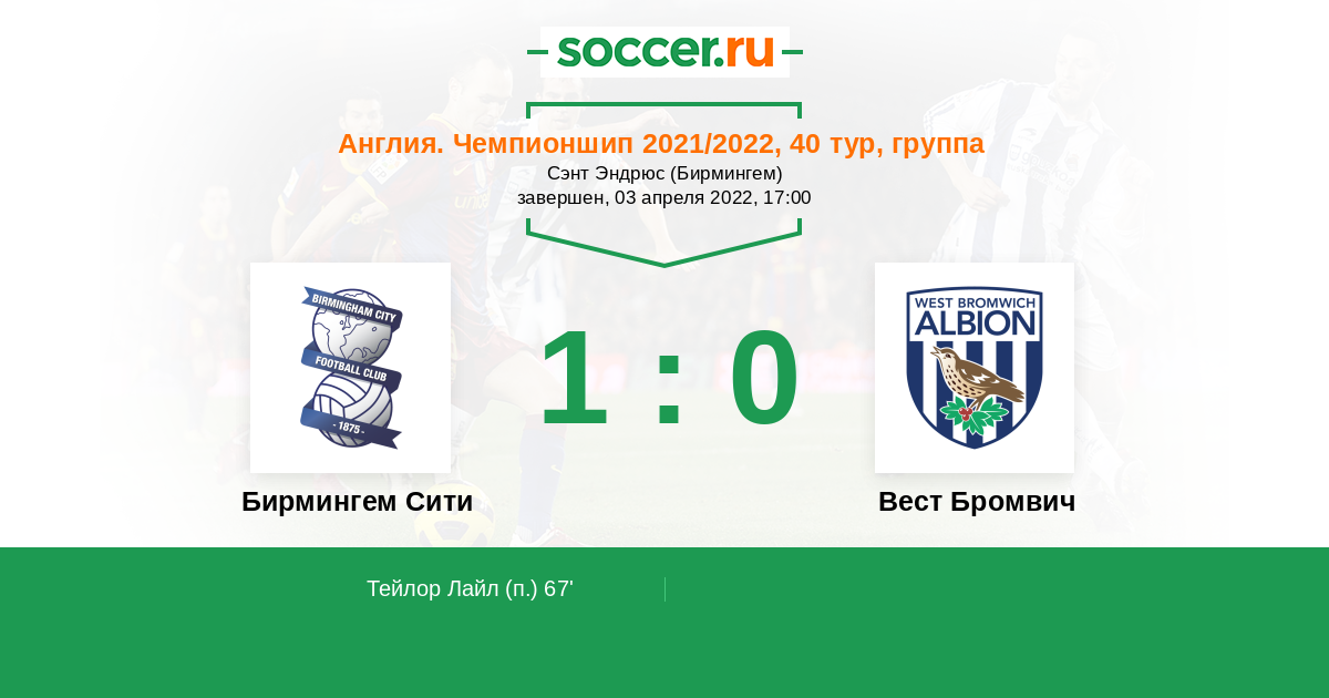 Протокол матча Бирмингем Сити против Вест Бромвич