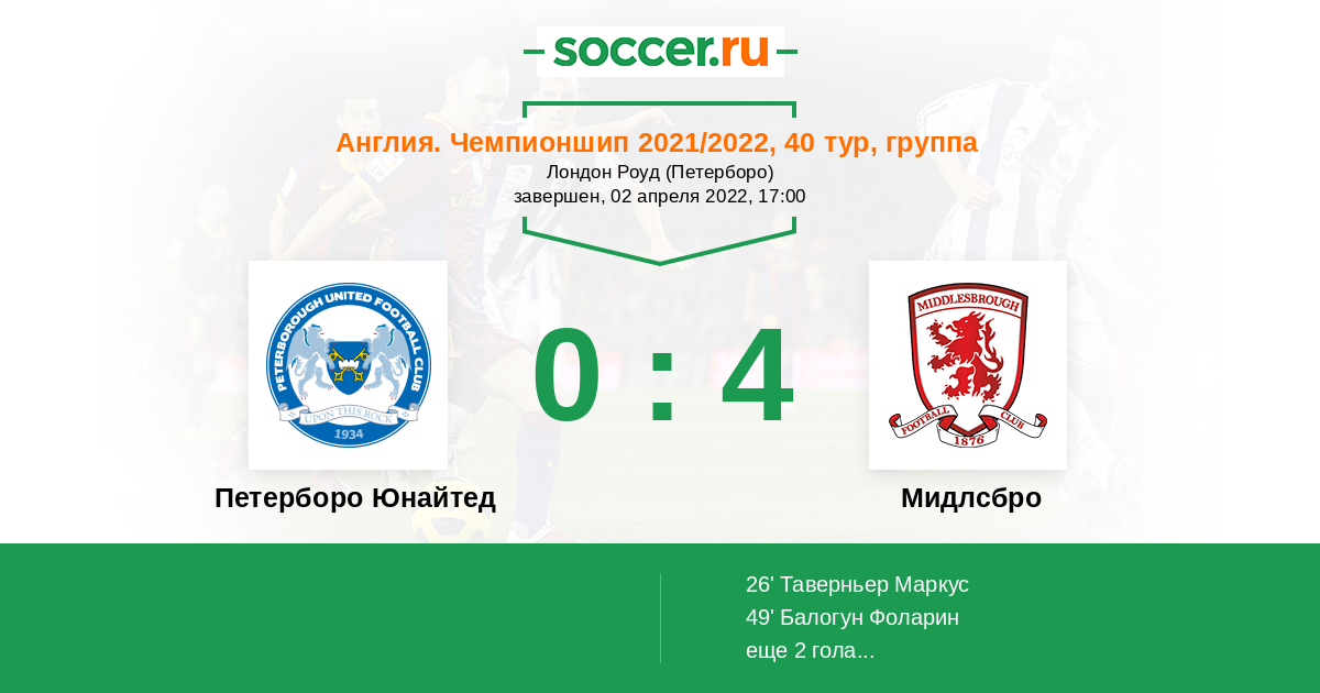Протокол матча Петерборо Юнайтед против Мидлсбро