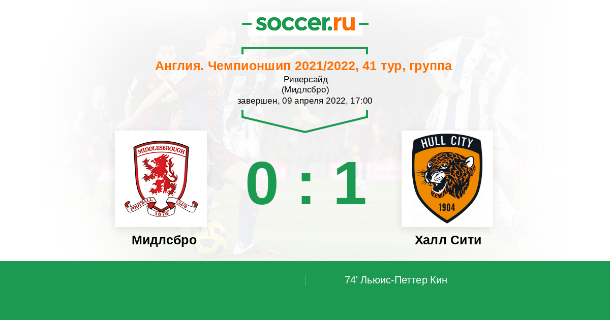 Протокол матча Мидлсбро против Халл Сити