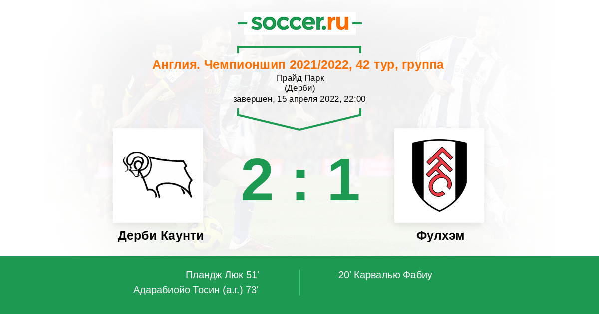 Протокол матча Дерби Каунти против Фулхэм