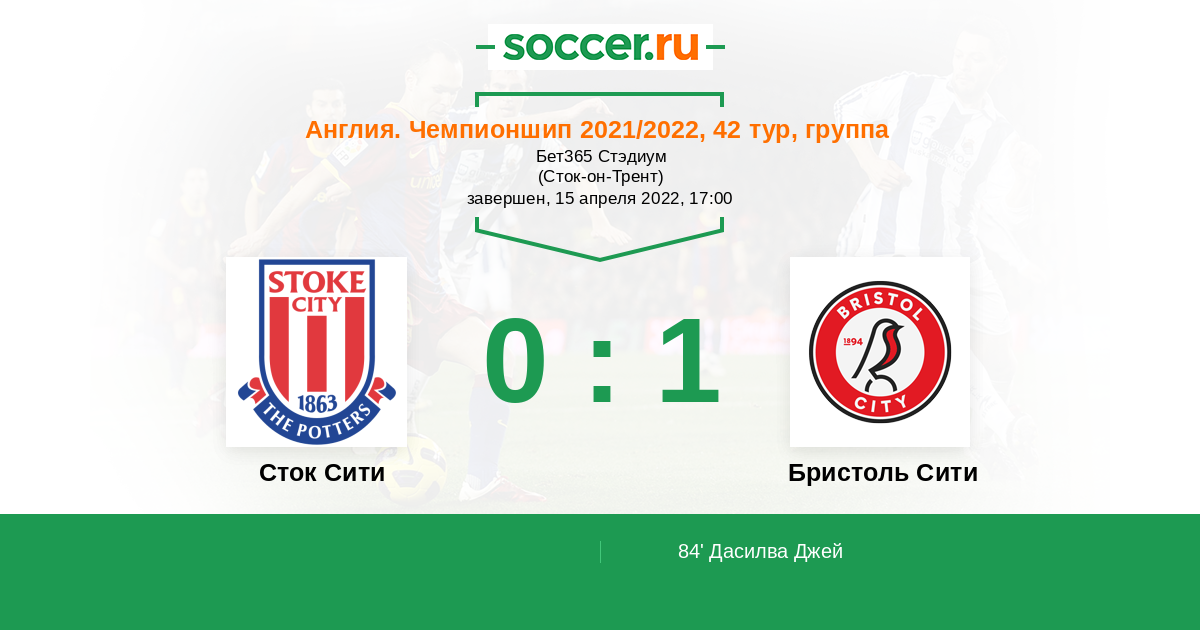 Протокол матча Сток Сити против Бристоль Сити