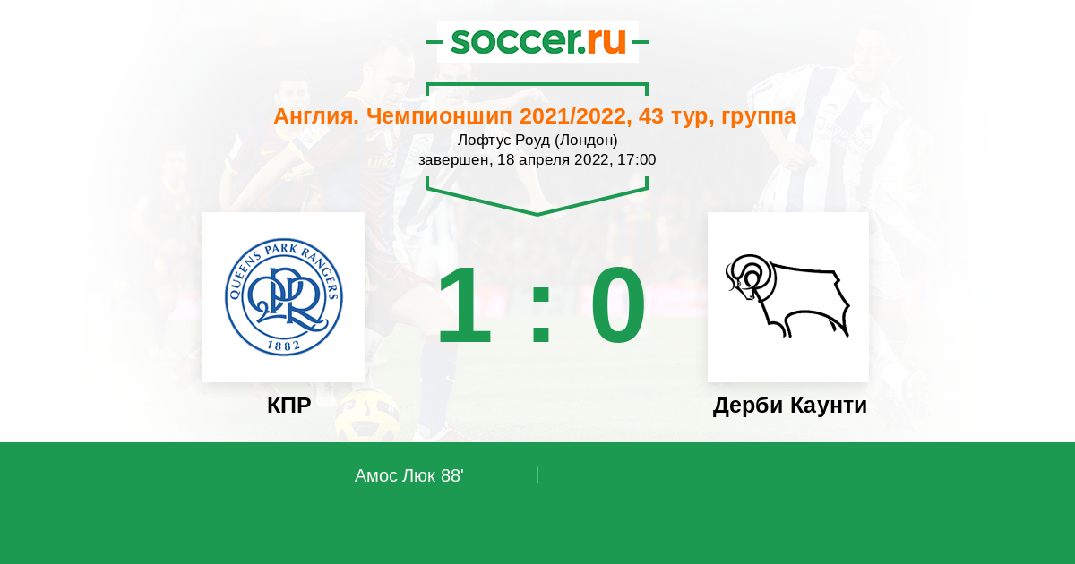 Протокол матча КПР против Дерби Каунти
