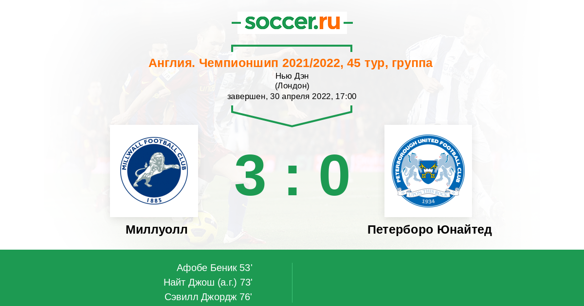 Протокол матча Миллуолл против Петерборо Юнайтед