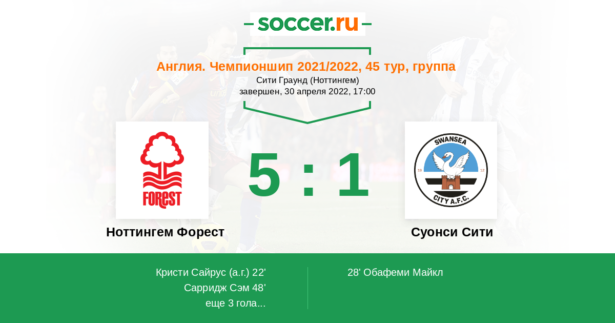 Протокол матча Ноттингем Форест против Суонси Сити