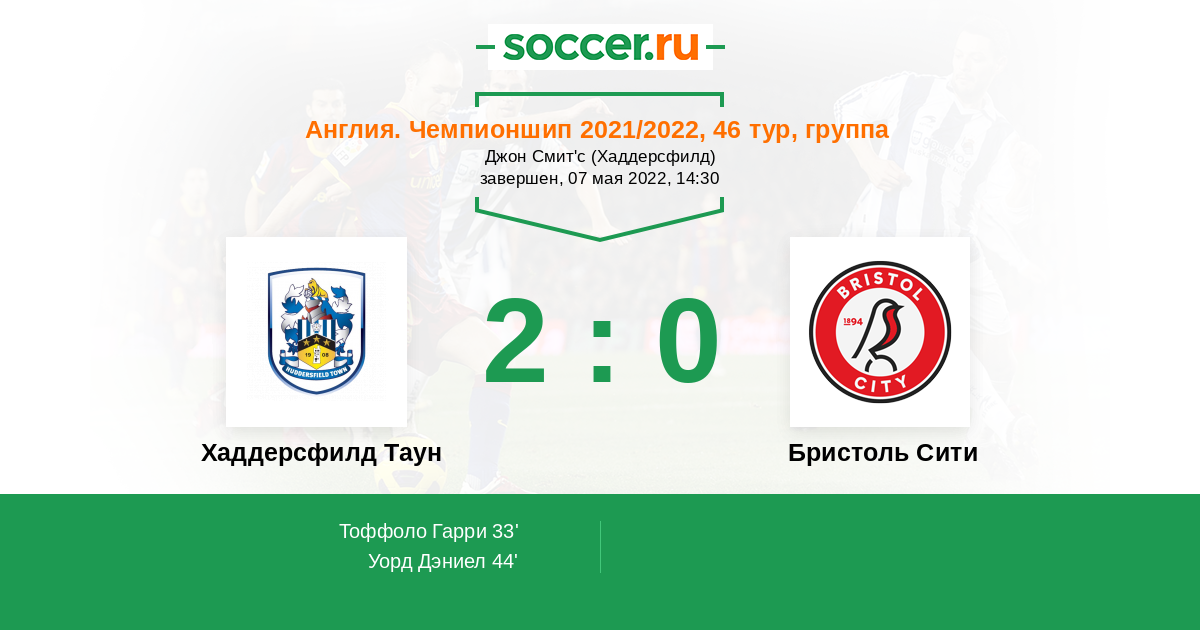 Протокол матча Хаддерсфилд Таун против Бристоль Сити