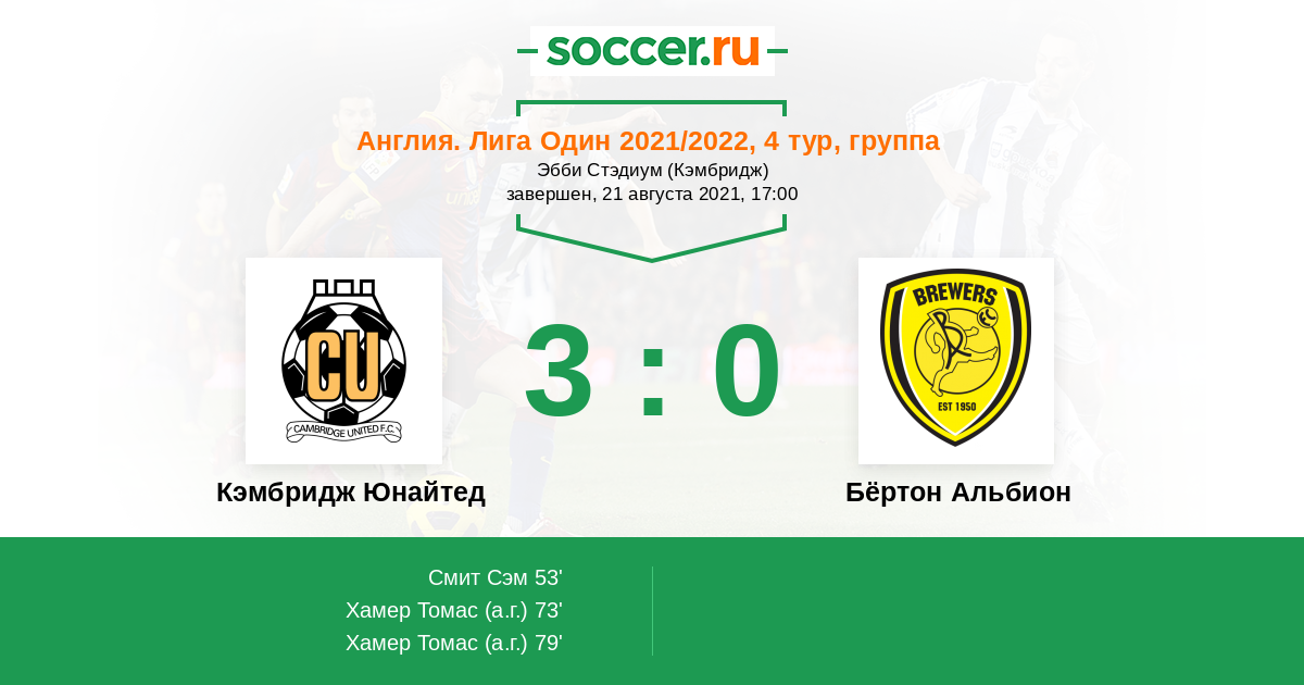 Протокол матча Кэмбридж Юнайтед против Бёртон Альбион