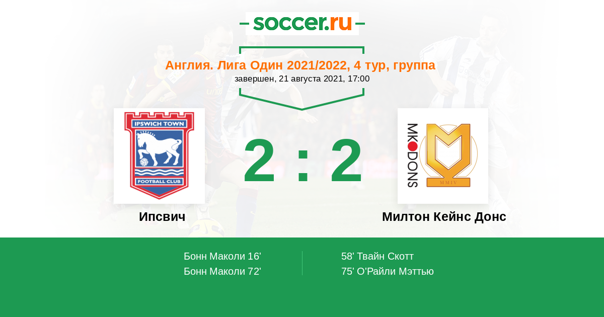 Протокол матча Ипсвич против Милтон Кейнс Донс