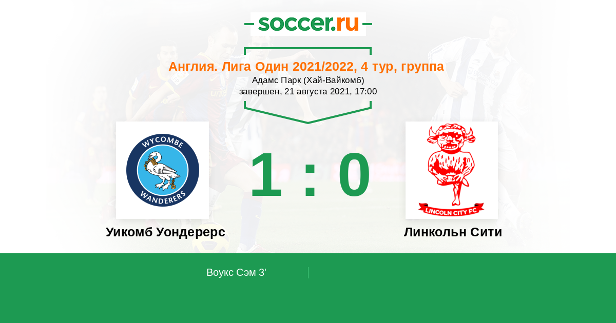 Протокол матча Уикомб Уондерерс против Линкольн Сити