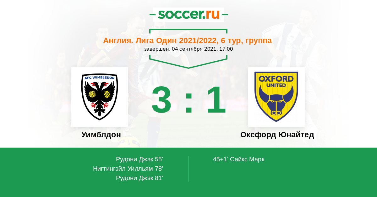 Протокол матча Уимблдон против Оксфорд Юнайтед