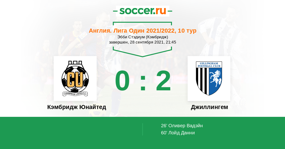 Протокол матча Кэмбридж Юнайтед против Джиллингем
