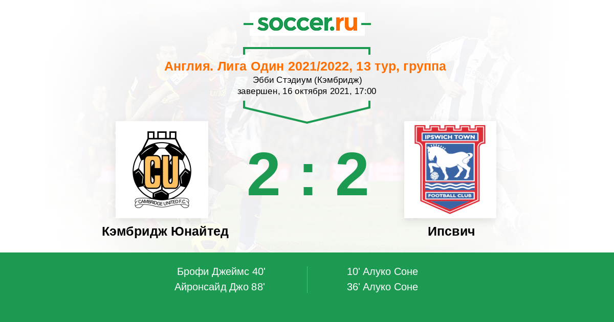 Протокол матча Кэмбридж Юнайтед против Ипсвич
