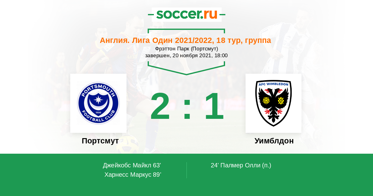 Протокол матча Портсмут против Уимблдон