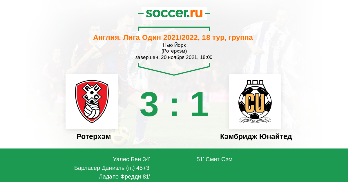 Протокол матча Ротерхэм против Кэмбридж Юнайтед