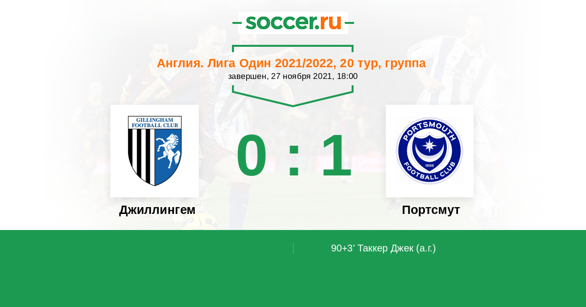 Протокол матча Джиллингем против Портсмут