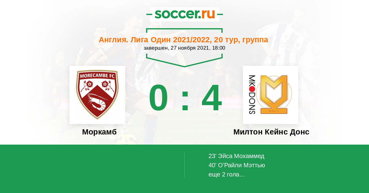 Протокол матча Моркамб против Милтон Кейнс Донс