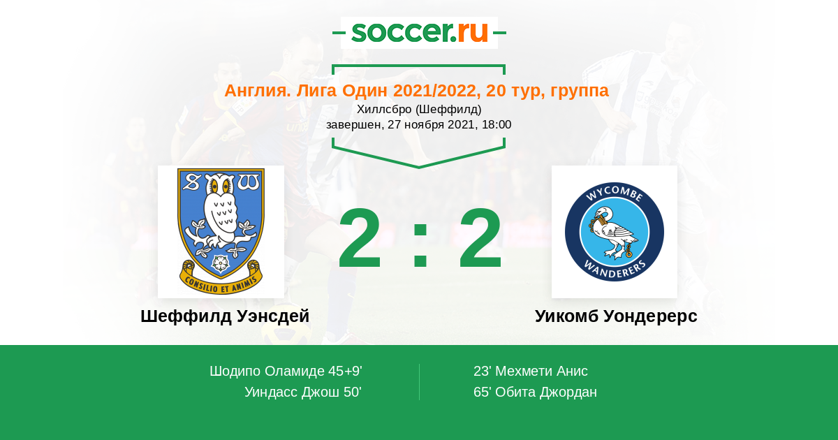 Протокол матча Шеффилд Уэнсдей против Уикомб Уондерерс