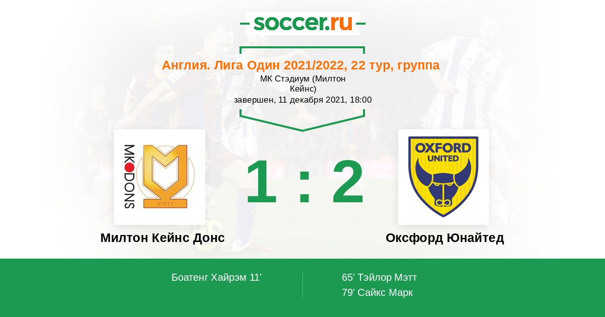 Протокол матча Милтон Кейнс Донс против Оксфорд Юнайтед