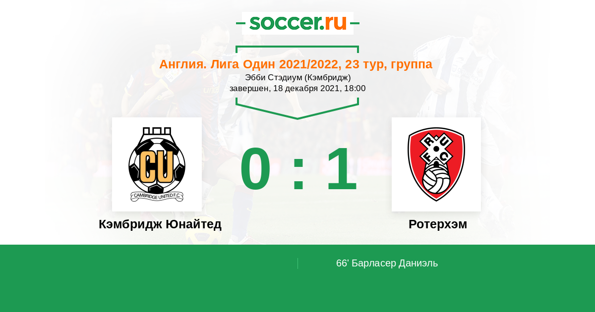 Протокол матча Кэмбридж Юнайтед против Ротерхэм