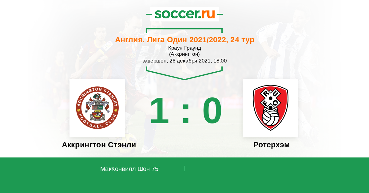 Протокол матча Аккрингтон Стэнли против Ротерхэм