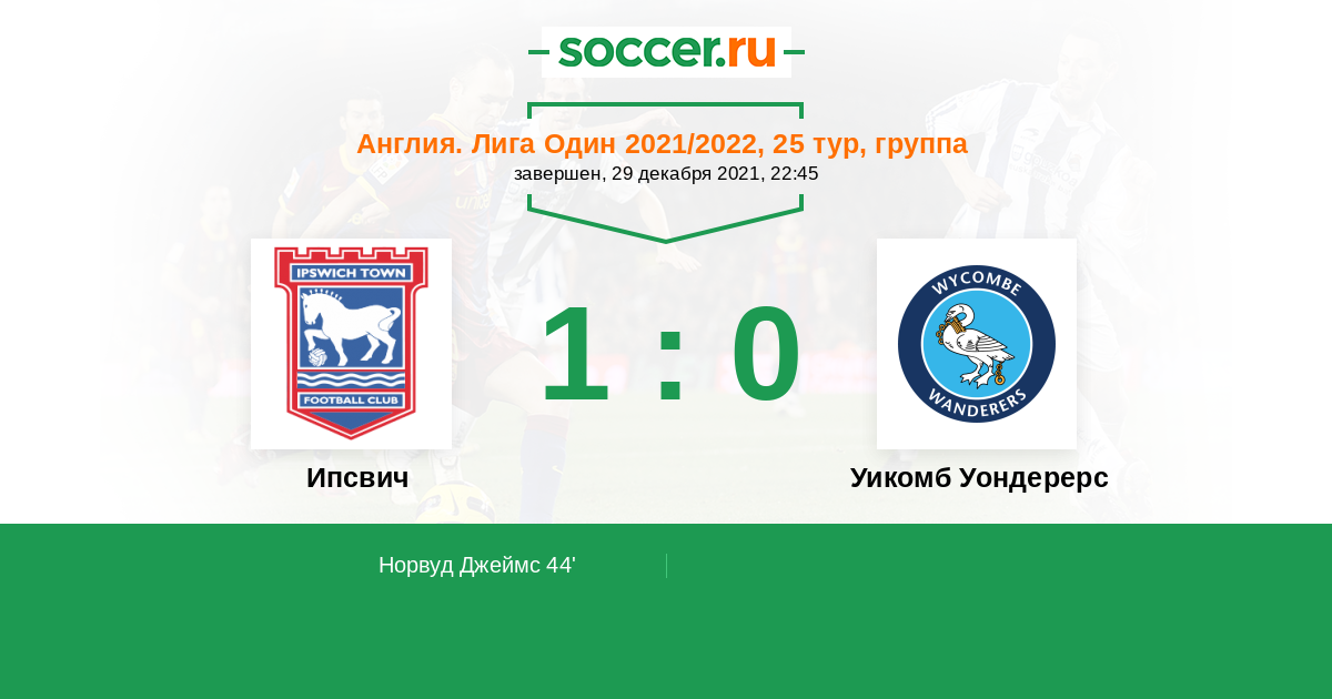 Протокол матча Ипсвич против Уикомб Уондерерс