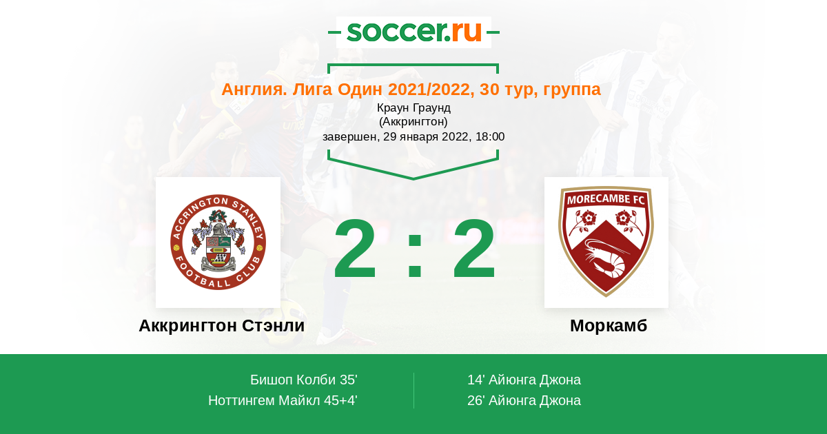 Протокол матча Аккрингтон Стэнли против Моркамб