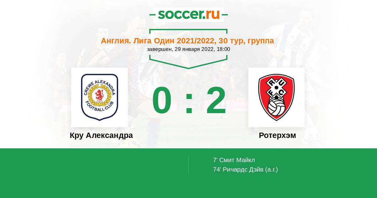 Протокол матча Кру Александра против Ротерхэм