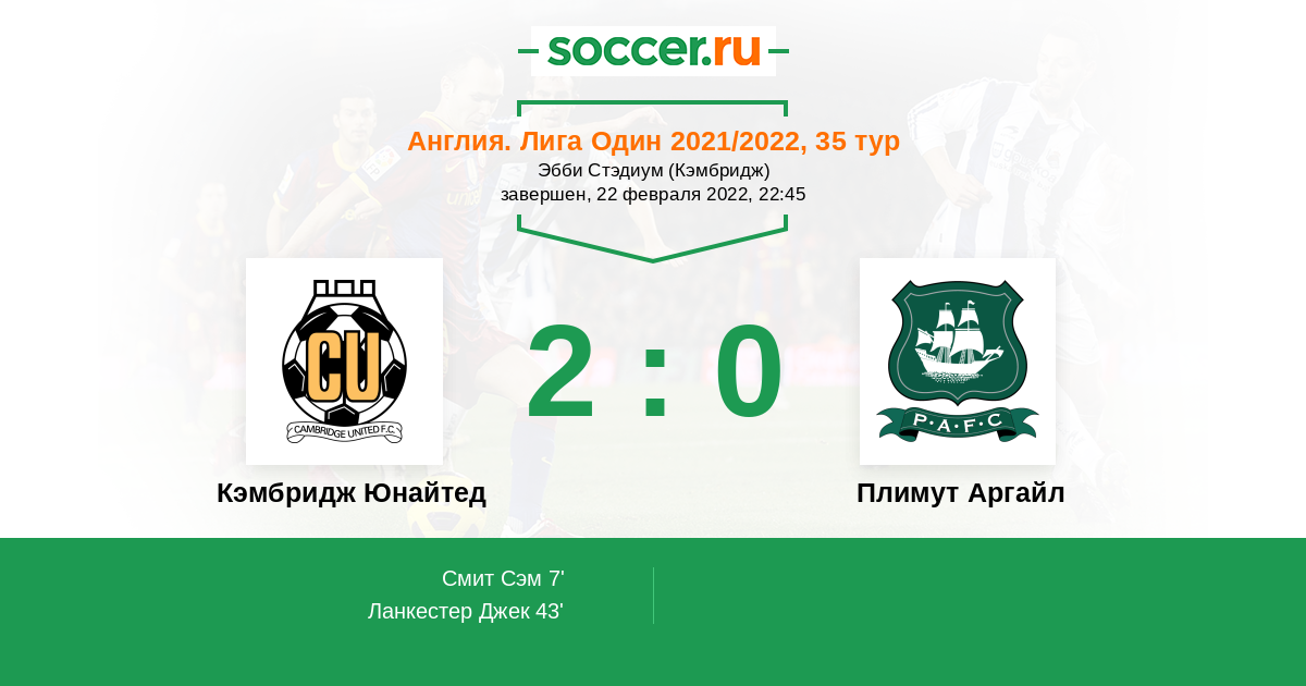 Протокол матча Кэмбридж Юнайтед против Плимут Аргайл