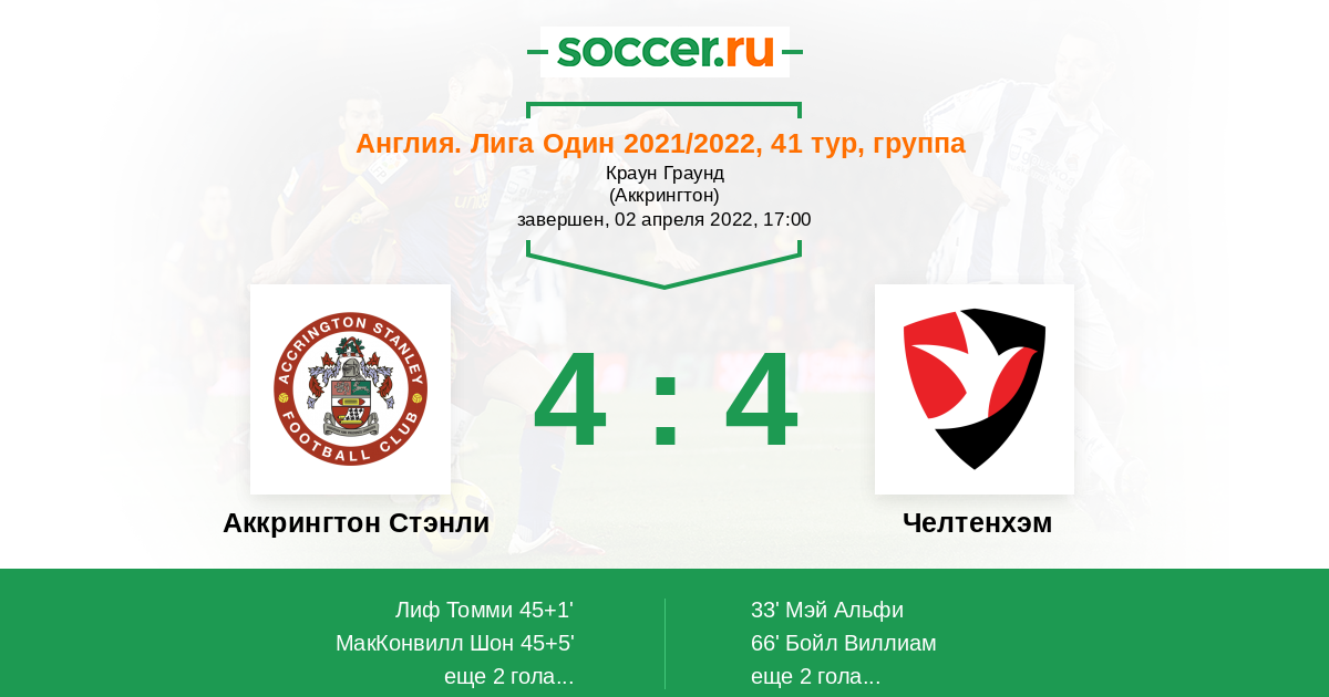 Протокол матча Аккрингтон Стэнли против Челтенхэм