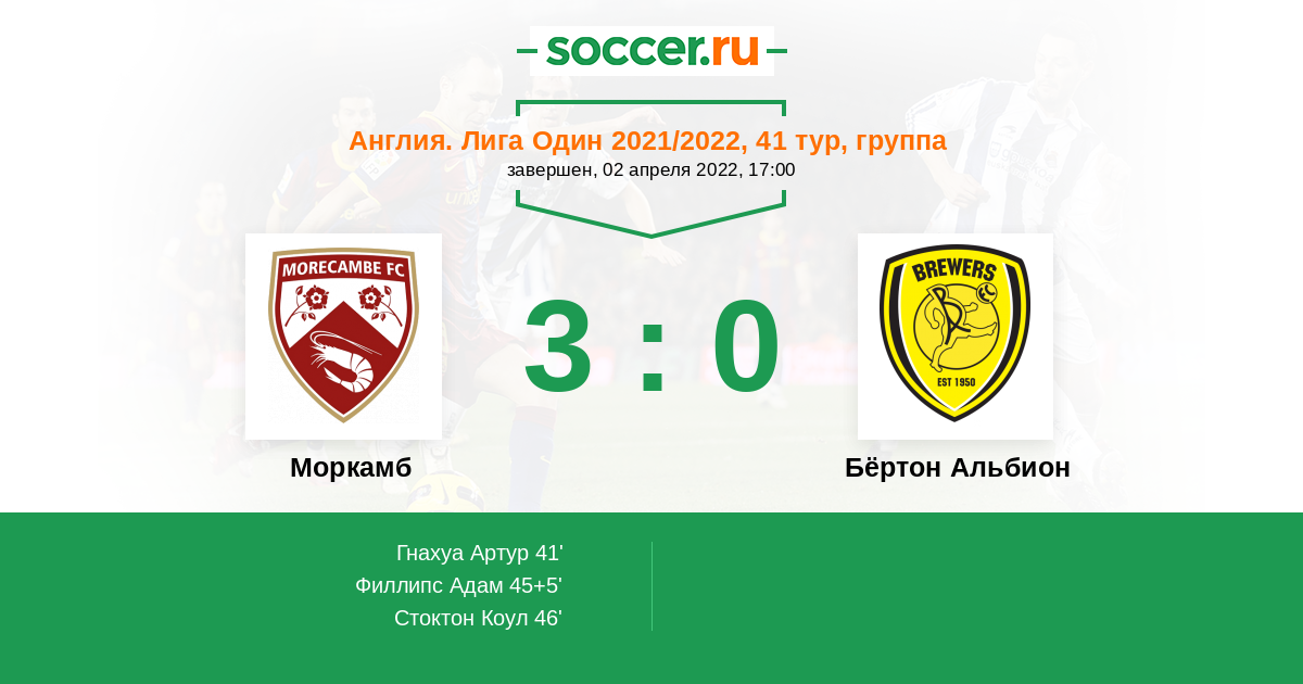 Протокол матча Моркамб против Бёртон Альбион