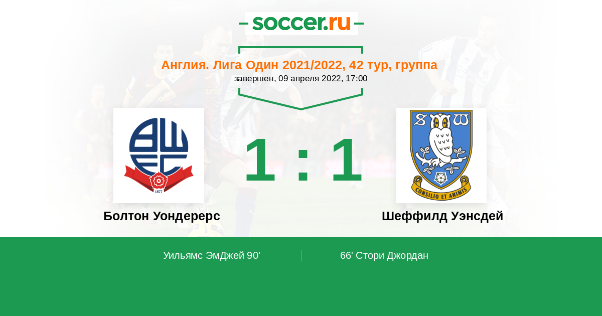 Протокол матча Болтон Уондерерс против Шеффилд Уэнсдей