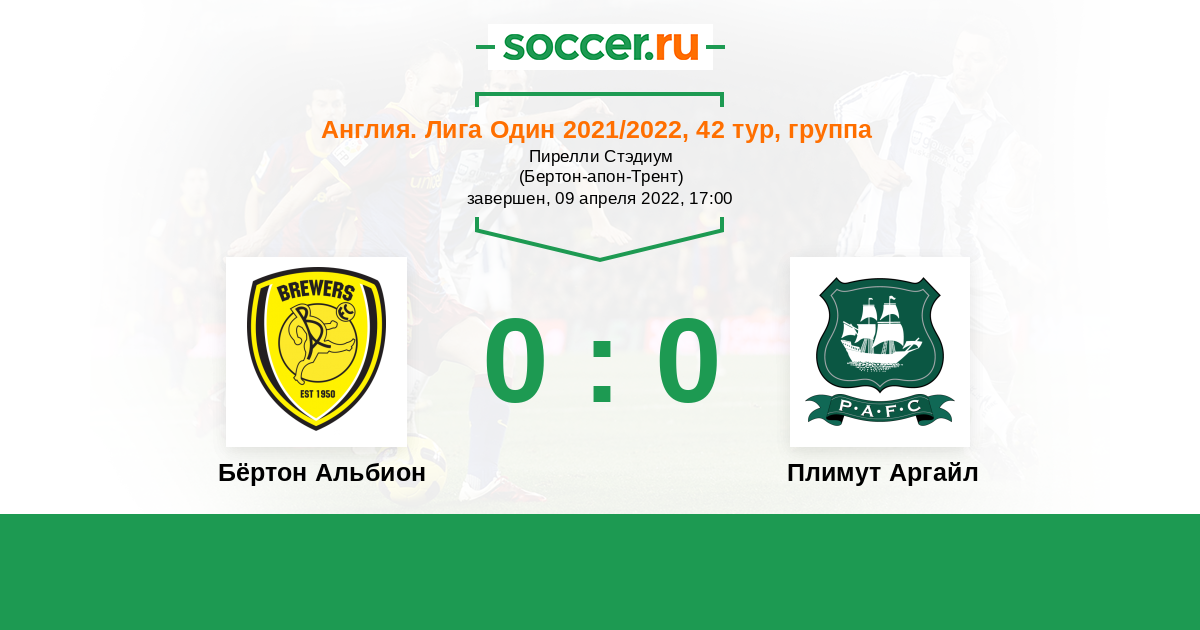 Протокол матча Бёртон Альбион против Плимут Аргайл