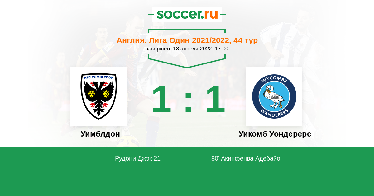 Протокол матча Уимблдон против Уикомб Уондерерс