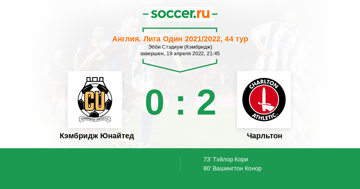 Протокол матча Кэмбридж Юнайтед против Чарльтон