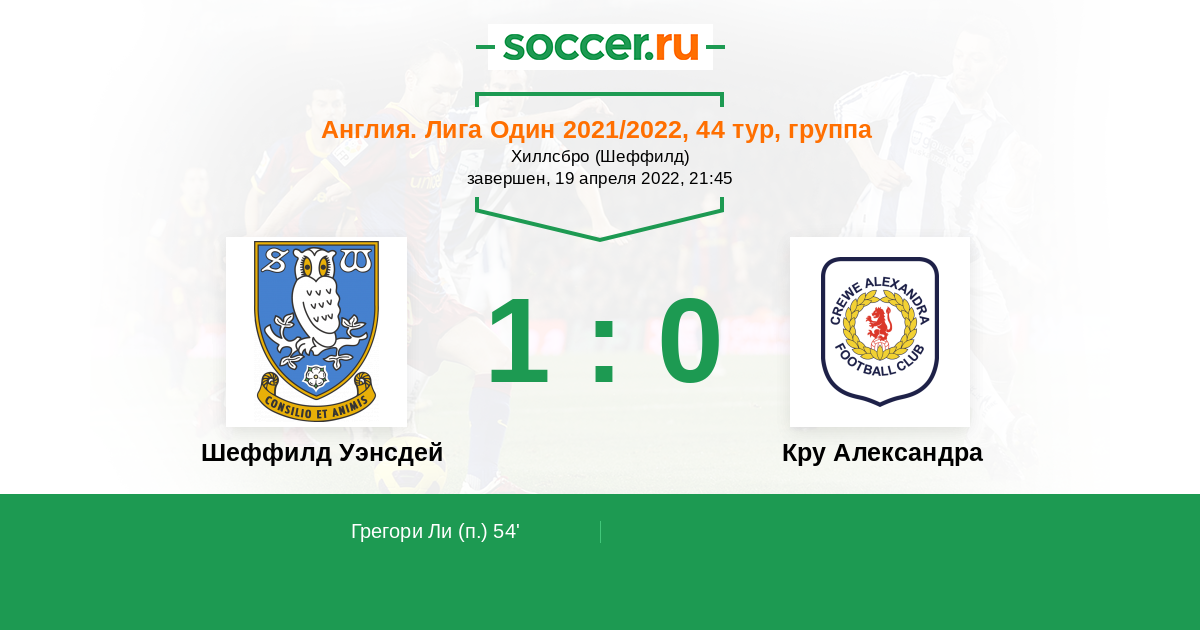 Протокол матча Шеффилд Уэнсдей против Кру Александра